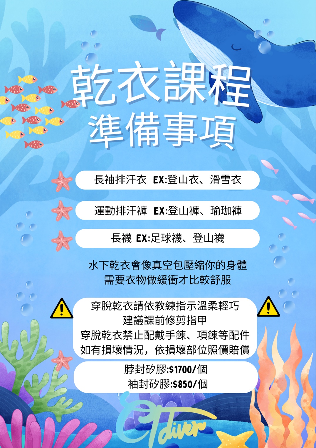 - NT$13,500 (含乾衣租用費用) (不含潛水裝備使用,裝備租用以半價收費)