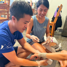 - 第一天:上午進行EFR課程,內容包含:模擬情節討論、CPR與AED的練習、急救包紮練習。 下午進行救援潛水員的知識發展。